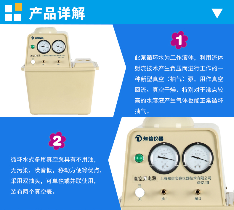 此循環(huán)泵以水為工作介質(zhì),利用流體射流技術(shù)產(chǎn)生負壓而進行工作的一種新型真空(抽氣)泵,用作真空回流、真空干燥,特別對于沸點較高的水溶液產(chǎn)生氣體也能正常循環(huán)抽氣。
