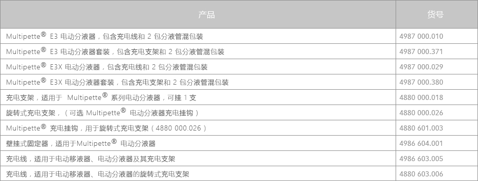 Multipette? E3/E3x 電動分液器結(jié)合分液管,提供從 1 μL——50 mL 的分液范圍,特別適合于高粘度、易揮發(fā)、易起泡、高密度及危險性等問題溶液的精準(zhǔn)移取及分裝。中文彩色界面、RFID 數(shù)據(jù)讀寫、睡眠模式、8 檔速度調(diào)節(jié)等功能提升您的使用體驗。