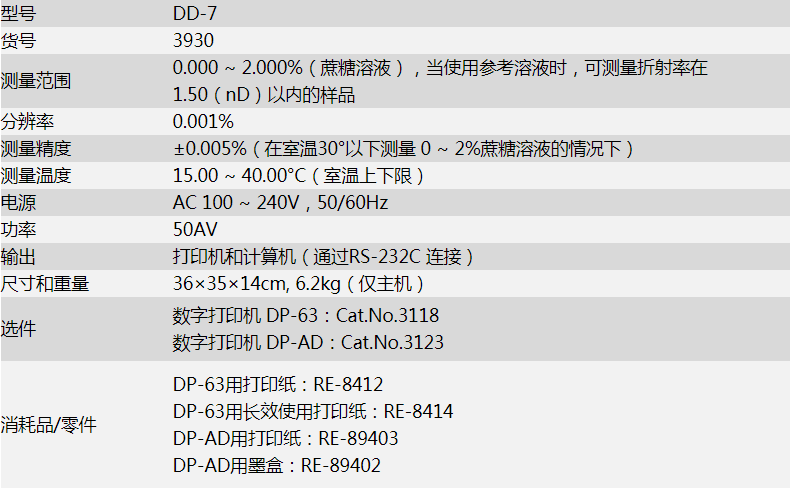 ±0.005%(在室溫30°以下測(cè)量0~2%蔗糖溶液的情況下) |