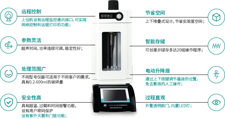 • 處理范圍廣 不同型號儀器可適用于不同客戶的需求,具有0.2-600ml的破碎量