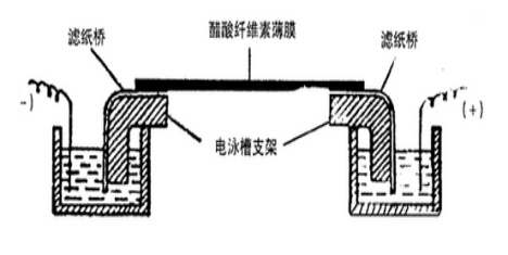 以醋酸纖維制成的薄膜作為支撐體的電泳稱為薄膜電泳。 醋酸纖維是纖維素的醋酸酯,由纖維素的羥基經(jīng)乙酰化而成。 將之溶于丙酮等有機溶劑中,即可涂布成均一細密的微孔薄膜, 厚度約以0.1-0.15mm為宜。 醋酸纖維素薄膜與濾紙相比較,有以下優(yōu)點: